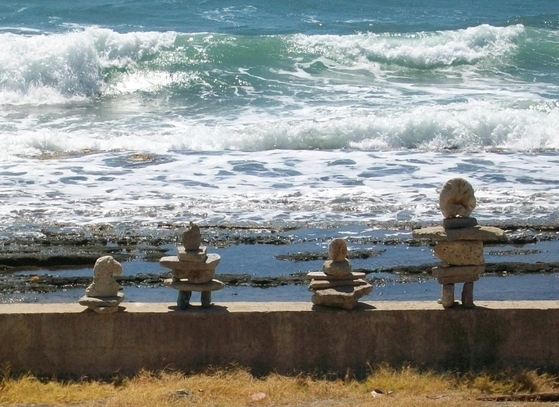 As I near the hotel, I stop to photograph an inukshuk, then another. Little sentries of stone and coral, staring out to sea. Once built as monuments for communication and survival in the Arctic, the inukshuk (the preferred Inuit spelling is inuksuk, plural inuksuit) is now often used officially as a symbol of Canadian friendship and cooperation. Here on a deserted Cuban beach, they are signposts to the passage of Canadians and tokens of affection for their windblown place in the sun.
