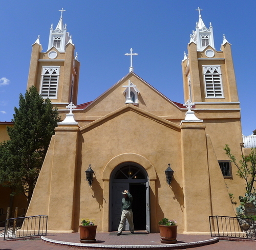 We spent the rest of the warm afternoon as urban archaeologists, exploring Albuquerque’s history through its architecture which reflects Native American, Hispanic and Anglo influences. The heart of Old Town is the leafy Plaza, laid out in 1706. We began at the old adobe church of San Felipe de Neri (1793), then spent some time poking into a few of the area’s 200 shops and galleries. The buildings are as interesting as what they contain, with time-burnished wood vigas (beams) supporting handsome 19th-century and Pueblo Revival buildings.