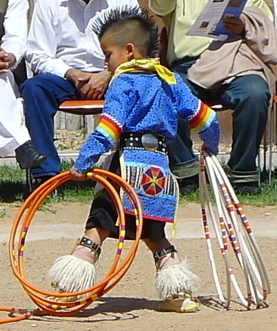 The youngest member of the Yellow Bird Dance Group gets ready to perform at the Indian Pueblo Cultural Center, Albuquerque.