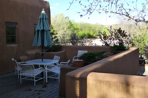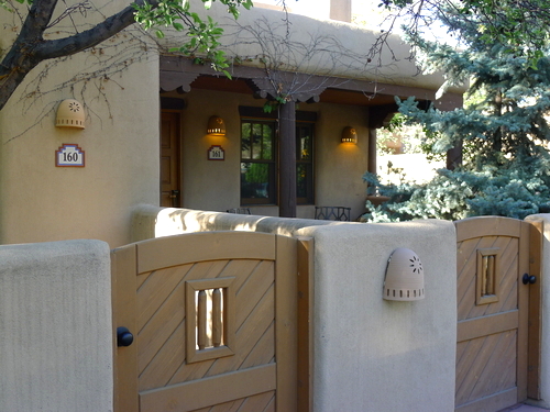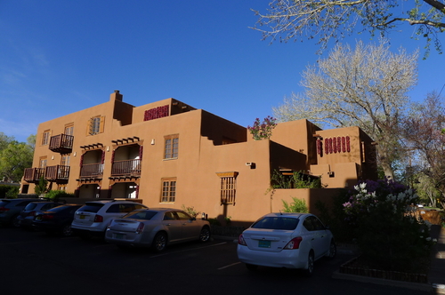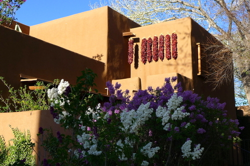 The scent of spring lilacs drifts in from the patio. The puff of breeze ruffles the maps and brochures beside me on the bed. Warm evening sun slants into our room at Inn on the Alameda, Santa Fe, New Mexico.