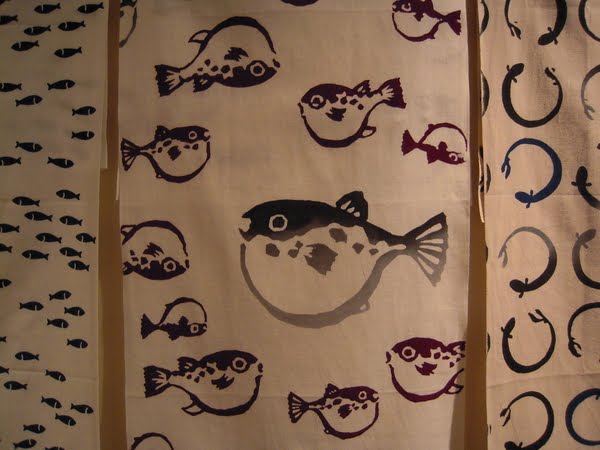 All aitch might have broken loose downtown during the G20 summit but inside the Japan Foundation Toronto (on Bloor Street just west of Bay), life went on as serenely as ever. In fact, attendance was up for their exhibit Tenugui Towels: Design Excellence in Japanese Daily Life. I went back Thursday night, not just to take another look at these pretty and versatile (used for everything from wrapping books and food to wrapping heads and necks) lengths of unhemmed cotton but to listen to program officer Toshi Aoyagi give a slideshow on the use of tenugui on the Kabuki stage.