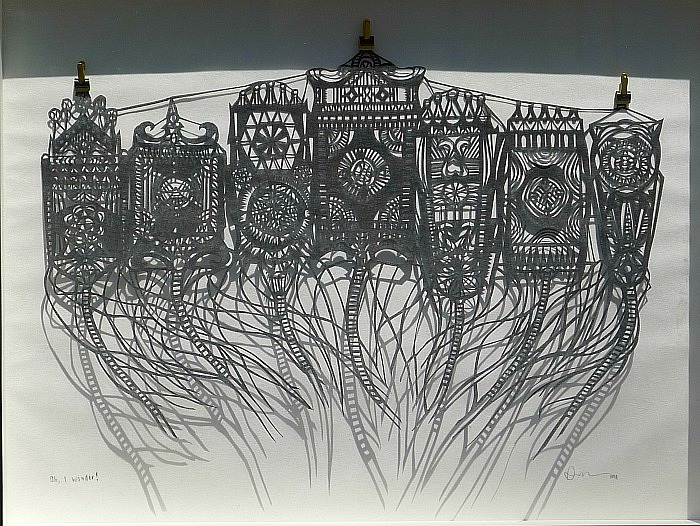 Grabbing my attention this year: Annyen Lam (printmaker turned paper cutter), Susan Gale (bright paintings of Toronto), Ian Mcmurrich (digital portraits with candy-coloured auras), Kevin Roach (folk art with cottage country finds), Gordon Leverton (still, Hopper-esque houses), Jorgen Lauritzen (Dali-like digital images of Toronto’s lonelier outbacks).